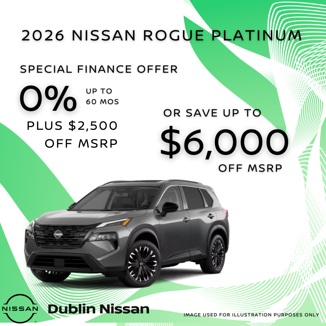 Dublin Nissan, Dublin San Francisco Bay Area and N California.1 @ this price VIN: JN8BT3DD0TW475653. MSRP $47.105. 1 At this price. DUBLIN INCENTIVE OF $3,500, PLUS $2,500 Customer Cash FOR A TOTAL OF $6,000 off MSRP. Offer can not be combined with special apr or lease. Prices do not include government fees and taxes, any finance charge, any dealer document processing charge, any electronic filing charge and any emissions testing charge. PLUS DEALER ADDED ACCESSORIES. Offer Expires 03.31.2026 Dublin Nissan, Dublin San Francisco Bay Area and N California.1 @ this price VIN: JN8BT3DD0TW475653. MSRP $47.105. 1 At this price. 0% APR up to 60 months. PLUS $2,500 DUBLIN INCENTIVE. $16.67/month per $1,000 financed at 0% for 60 months based on zero down payment and zero manufacture rebate, 0% available when you finance through NMAC. Down payment may be required. All offers: Prices do not include government fees and taxes, any finance charges, $85 dealer document processing fee, $37 electronic filing fee and any emissions testing fee. See dealer for details. PLUS DEALER ADDED ACCESSORIES. All offers expire 03.31.2026
