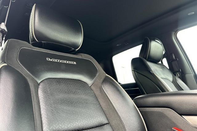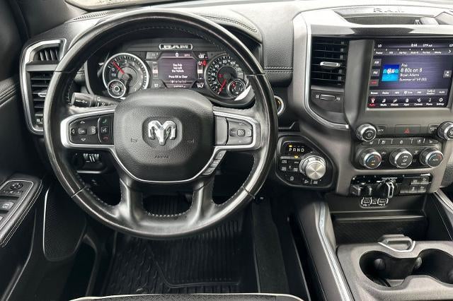 Backup Camera, Bluetooth®, Alloy Wheels, Audio Package, Climate Package, Comfort Package, Heat Package, Leather Seats, Light Package, NON SMOKER, Power Mirror Package, Power Package, Security Package, Sound Package, Tow Package, 1500 Laramie, 4D Crew Cab, HEMI 5.7L V8 Multi Displacement VVT, 8-Speed Automatic, 4WD, Diamond Black Crystal Pearlcoat, Black w/Leather Trim 40/20/40 Bench Seat or Leather Trimmed Bucket Seats, 10 Speakers, 3 Rear Seat Head Restraints, 3.21 Rear Axle Ratio, 33 Gallon Fuel Tank, 4 Way Front Headrests, 4-Wheel Disc Brakes, 48V Belt Starter Generator, 8.4 Touchscreen Display, ABS brakes, Adjustable pedals, Air Conditioning, Alloy wheels, AM/FM radio: SiriusXM, Apple CarPlay, Apple CarPlay/Android Auto, Audio memory, Auto High Beam Headlamp Control, Auto-dimming door mirrors, Auto-dimming Rear-View mirror, Automatic temperature control, Black Interior Accents, Body Color Door Handles, Body Color Exterior Mirrors, Body Color Front Bumper, Body Color Premium Power Mirrors, Body Color Rear Bumper w/Step Pads, Brake assist, Bumpers: chrome, Chrome Exterior Mirrors, Compass, Delay-off headlights, Dome Dual LED Reading Lamp, Driver door bin, Driver Seat Memory, Driver vanity mirror, Dual front impact airbags, Dual front side impact airbags, Dual-Pane Panoramic Sunroof, E-Locker Rear Axle, Electronic Stability Control, Foam Bottle Insert (Door Trim Panel), For More Info, Call 800-643-2112, Front anti-roll bar, Front Center Armrest w/Storage, Front dual zone A/C, Front Extra HD Shock Absorbers, Front License Plate Bracket, Front reading lights, Front Seat Back Map Pockets, Front wheel independent suspension, Fully automatic headlights, Garage door transmitter, Google Android Auto, GPS Antenna Input, Grille Surround 3 Body Color Tex 2 Black, Heated door mirrors, Heated Front Seats, Heated front seats, Heated Steering Wheel, Heated steering wheel, Hill Descent Control, Illuminated entry, Integrated Center Stack Radio, Integrated Voice Command w/Bluetooth®, Laramie Level A Equipment Group, Leather steering wheel, Leather Trim 40/20/40 Bench Seat, LED Dome/Reading Lamp, Low tire pressure warning, Manufacturer's Statement of Origin, Memory seat, MOPAR Front & Rear Rubber Floor Mats, Occupant sensing airbag, Off Road Decals, Off Road Group, Off-Road Information Pages, Outside temperature display, Overhead airbag, Overhead console, Panic alarm, ParkSense Front/Rear Park Assist w/Stop, ParkView Rear Back-Up Camera, Passenger door bin, Passenger vanity mirror, Pedal memory, Power 4-Way Driver Lumbar Adjust, Power 4-Way Passenger Lumbar Adjust, Power 8-Way Driver & Passenger Seats, Power door mirrors, Power driver seat, Power passenger seat, Power steering, Power windows, Quick Order Package 27H Laramie, Radio data system, Radio: Uconnect 4 w/8.4 Display, Rain Sensitive Windshield Wipers, Rear 60/40 Folding Split Recline Seat, Rear anti-roll bar, Rear Extra HD Shock Absorbers, Rear seat center armrest, Rear step bumper, Rear window defroster, Remote keyless entry, Remote Tailgate Release, Security system, SiriusXM Radio Service, SiriusXM Satellite Radio, Speed control, Split folding rear seat, Sport Appearance Package, Sport Decal, Sport Performance Hood, Steering wheel mounted audio controls, Tachometer, Tailgate Ajar Warning Lamp, Telescoping steering wheel, Tilt steering wheel, Tow Hooks, Traction control, Trailer Brake Control, Trip computer, Turn signal indicator mirrors, Variably intermittent wipers, Ventilated Front Seats, Ventilated front seats, Voltmeter. CARFAX One-Owner. Diamond Black Crystal Pearlcoat 2021 Ram 1500 Laramie 4WD 8-Speed Automatic HEMI 5.7L V8 Multi Displacement VVT