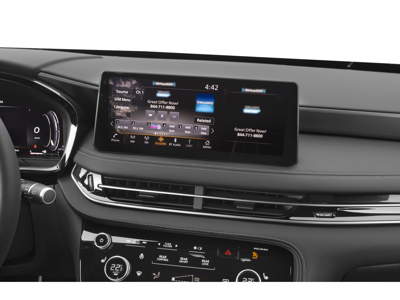 Elevate your driving experience with the premium features of the QX60 LUXE. Enjoy the convenience of the power liftgate, the comfort of the climate-controlled front bucket seats, and the peace of mind of the advanced safety technologies, including the emergency communication system and the rear side impact airbag.