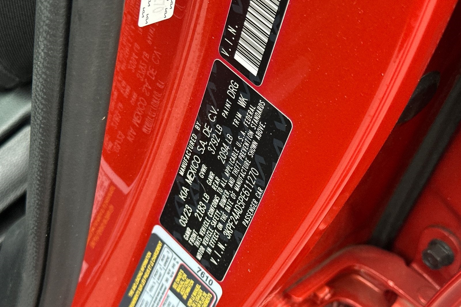 Backup Camera, Bluetooth®, Alloy Wheels, Audio Package, Climate Package, Comfort Package, Heat Package, Light Package, NON SMOKER, Power Mirror Package, Power Package, Security Package, Sound Package, Forte LXS, 4D Sedan, 2.0L I4 MPI, CVT, FWD, Fire Orange, Black w/Cloth Seat Trim, 4 Speakers, 4-Wheel Disc Brakes, ABS brakes, Air Conditioning, Alloy wheels, AM/FM radio, Apple CarPlay & Android Auto, Auto High-beam Headlights, Blind-Spot Collision Avoidance (BCA), Brake assist, Bumpers: body-color, Cloth Seat Trim, Delay-off headlights, Driver door bin, Driver vanity mirror, Dual front impact airbags, Dual front side impact airbags, Electronic Stability Control, Exterior Parking Camera Rear, Front anti-roll bar, Front Bucket Seats, Front Center Armrest, Front reading lights, Front wheel independent suspension, Fully automatic headlights, Heated Outside Mirrors, Illuminated entry, LED Turn Signal w/Outside Mirror Indicators, Low tire pressure warning, LXS Technology Package, Occupant sensing airbag, Outside temperature display, Overhead airbag, Overhead console, Panic alarm, Passenger door bin, Passenger vanity mirror, Power door mirrors, Power steering, Power windows, Radio data system, Radio: 8 Display Audio, Rear Cross-Traffic Collision Avoidance (RCCA), Rear window defroster, Remote keyless entry, Safe Exit Warning (SEW), Security system, Speed control, Split folding rear seat, Steering wheel mounted audio controls, Tachometer, Telescoping steering wheel, Tilt steering wheel, Traction control, Trip computer, Variably intermittent wipers. Fire Orange 2023 Kia Forte LXS FWD CVT 2.0L I4 MPI
