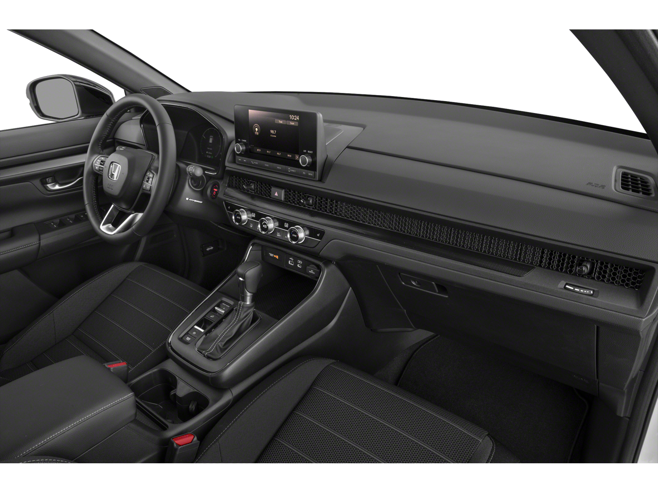Backup Camera, Bluetooth®, Alloy Wheels, Audio Package, Climate Package, Comfort Package, Heat Package, Light Package, NON SMOKER, One Owner Carfax, Power Mirror Package, Power Package, Security Package, Sound Package, CR-V Hybrid Sport, 4D Sport Utility, 2.0L I4 DOHC 16V, eCVT, AWD, Urban Gray Pearl, 4-Wheel Disc Brakes, 4.438 Axle Ratio, 6 Speakers, ABS brakes, Adaptive Cruise Control: Adaptive Cruise Control (ACC) with Low-Speed Follow, Air Conditioning, Alloy wheels, Apple CarPlay/Android Auto, Auto High-beam Headlights, Automatic temperature control, Blind Spot Information (BSI) System warning, Brake assist, Bumpers: body-color, Cloth Seat Trim, Compass, Delay-off headlights, Driver door bin, Driver vanity mirror, Dual front impact airbags, Dual front side impact airbags, Electronic Stability Control, Exterior Parking Camera Rear, Four wheel independent suspension, Front anti-roll bar, Front Bucket Seats, Front Center Armrest, Front dual zone A/C, Front reading lights, Fully automatic headlights, Heated door mirrors, Heated Front Bucket Seats, Heated front seats, Illuminated entry, Knee airbag, Leather Shift Knob, Leather steering wheel, Low tire pressure warning, Occupant sensing airbag, Outside temperature display, Overhead airbag, Overhead console, Panic alarm, Passenger door bin, Passenger vanity mirror, Power door mirrors, Power driver seat, Power moonroof, Power steering, Power windows, Radio data system, Radio: 240-Watt AM/FM Audio System, Rear anti-roll bar, Rear reading lights, Rear seat center armrest, Rear side impact airbag, Rear window defroster, Rear window wiper, Remote keyless entry, Security system, Speed control, Speed-sensing steering, Speed-Sensitive Wipers, Split folding rear seat, Spoiler, Steering wheel mounted audio controls, Telescoping steering wheel, Tilt steering wheel, Traction control, Trip computer, Turn signal indicator mirrors, Variably intermittent wipers. CARFAX One-Owner. Urban Gray Pearl 2024 Honda CR-V Hybrid Sport AWD eCVT 2.0L I4 DOHC 16V
