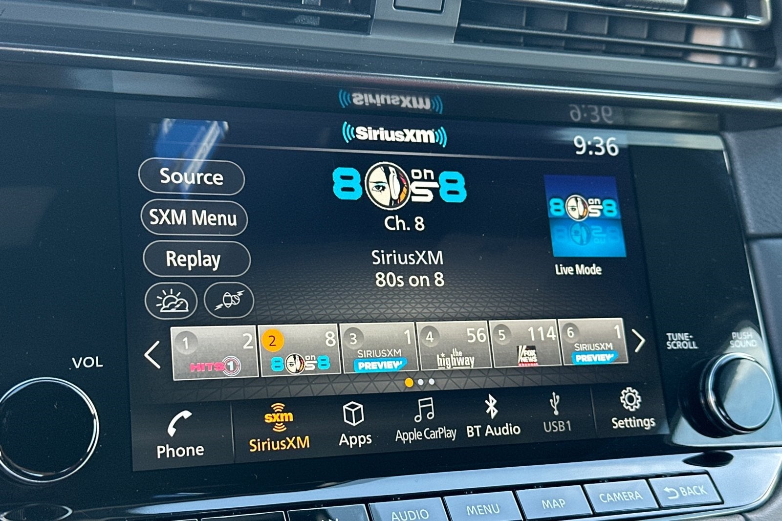 - Radio: Bose Audio System w/8 Speakers -inc: 9" touchscreen w/navigation, active noise cancellation (ANC), active sount enhancement (ASE), Bluetooth® hands-free phone system, streaming audio via Bluetooth®, SiriusXM Radio, wireless Apple CarPlay, Android Auto, hands-free text messaging assistant, voice recognition, Siri Eyes Free, 1 USB type-A, 1 USB type-C, Alexa connectivity and NissanConnect services w/Wi-Fi hotspot