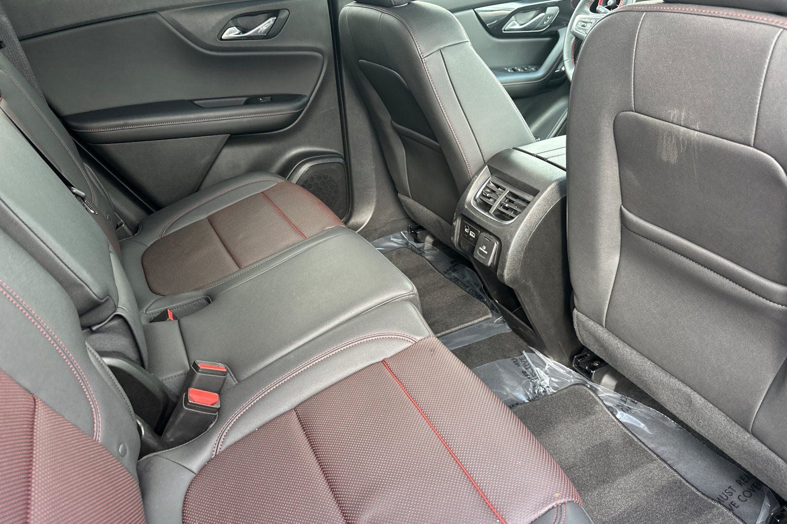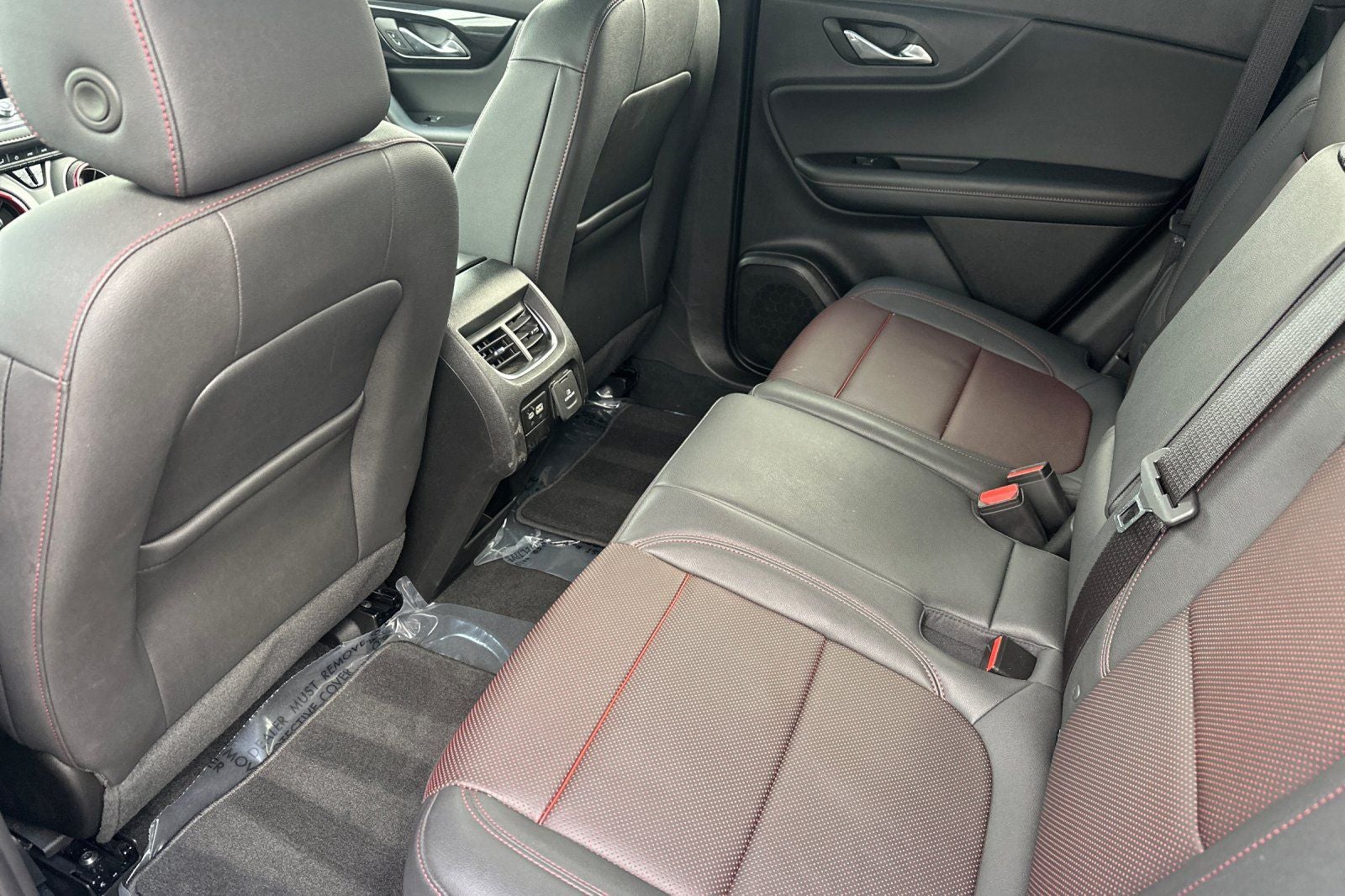 This 2025 Black Chevrolet Blazer RS AWD is well equipped and includes these features and benefits: Preferred Equipment Group 1RS, Blazer RS, 4D Sport Utility, 3.6L V6 SIDI, 9-Speed Automatic with Overdrive, AWD, Black, Jet Black With Red Accents Leather, 3.49 Final Drive Axle Ratio, 4-Wheel Disc Brakes, 6-Way Power Front Passenger Seat Adjuster, 8 Speakers, 8-Way Power Driver Seat Adjuster, ABS brakes, Air Conditioning, Alloy wheels, AM/FM radio: SiriusXM with 360L, Apple CarPlay/Android Auto, Auto High-beam Headlights, Auto-dimming door mirrors, Auto-dimming Rear-View mirror, Automatic temperature control, Bose Premium 8-Speaker Audio System Feature, Brake assist, Bumpers: body-color, Child-Seat-Sensing Airbag, Compass, Delay-off headlights, Driver door bin, Driver vanity mirror, Dual front impact airbags, Dual front side impact airbags, Electronic Stability Control, Emergency communication system: OnStar and Chevrolet connected services capable, Four wheel independent suspension, Front anti-roll bar, Front Bucket Seats, Front Center Armrest, Front dual zone A/C, Front reading lights, Fully automatic headlights, Garage door transmitter, Heated door mirrors, Heated Driver and Front Passenger Seats, Heated front seats, Heated steering wheel, Illuminated entry, Knee airbag, Leather Shift Knob, Leather steering wheel, Low tire pressure warning, Navigation System, Occupant sensing airbag, Outside temperature display, Overhead airbag, Overhead console, Panic alarm, Passenger door bin, Passenger vanity mirror, Perforated Leather-Appointed Seat Trim, Power door mirrors, Power Driver Lumbar Control, Power driver seat, Power Liftgate, Power passenger seat, Power steering, Power windows, Premium audio system: Chevrolet Infotainment 3 Premium, Radio data system, Radio: Chevrolet Infotainment 3 Premium System, Rear anti-roll bar, Rear reading lights, Rear seat center armrest, Rear window defroster, Rear window wiper, Remote keyless entry, Ride and Handling Suspension, Security system, SiriusXM with 360L, Speed control, Speed-sensing steering, Split folding rear seat, Spoiler, Steering wheel mounted audio controls, Stop-Start Engine Control System, Tachometer, Telescoping steering wheel, Tilt steering wheel, Traction control, Trip computer, Turn signal indicator mirrors, Variably intermittent wipers, Voltmeter, and Wheels: : 20 Technical Gray Aluminum.