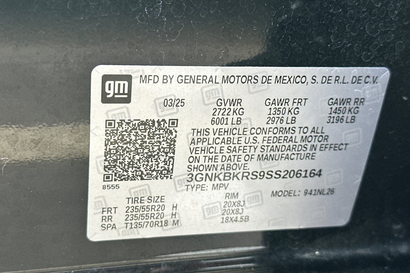 - Tires, P235/55R20 all-season blackwall