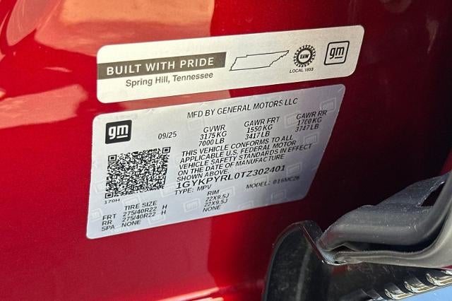 Backup Camera, Bluetooth®, Alloy Wheels, Audio Package, Climate Package, Comfort Package, Heat Package, Leather Seats, Light Package, One Owner Carfax, Power Mirror Package, Power Package, Security Package, LYRIQ Signature Sport, 4D Sport Utility, Electric Motor, 1-Speed Automatic, AWD, Radiant Red Tintcoat, Noir w/Santorini Blue Accents w/Inteluxe Seat Trim, 4-Wheel Disc Brakes, 8-Way Power Driver Seat Adjuster, 8-Way Power Front Passenger Seat Adjuster, ABS brakes, Air Conditioning, AKG Studio 23-Speaker System with Dolby Atmos, Alloy wheels, AM/FM radio: SiriusXM with 360L, Apple CarPlay/Android Auto, Auto High-beam Headlights, Auto-dimming door mirrors, Auto-dimming Rear-View mirror, Automatic temperature control, Black Roof, Brake assist, Bumpers: body-color, California Prop 65 Compliant Label Warning, Compass, Delay-off headlights, Driver 4-Way Power Lumbar Seat Adjustment, Driver and Front Passenger Heated Seats, Driver and Front Passenger Ventilated Seats, Driver door bin, Driver Seat Power Lumbar Massage, Driver vanity mirror, Dual front impact airbags, Dual front side impact airbags, Electronic Stability Control, Emergency communication system: OnStar and Cadillac connected services capable, Floor Liner Package, Four wheel independent suspension, Front and Rear 5-Link Suspension, Front and Rear Contoured Floor Liners, Front anti-roll bar, Front Bucket Seats, Front Center Armrest, Front dual zone A/C, Front License Plate Bracket, Front Passenger 4-Way Power Lumbar Seat Adjustment, Front Passenger Seat Memory, Front Passenger Seat Power Lumbar Massage, Front reading lights, Fully automatic headlights, Garage door transmitter, Google Built-in, Heads-Up Display, Heated 2nd Row Outboard Position Seats, Heated door mirrors, Heated front seats, Heated rear seats, Heated steering wheel, Hitch Guidance with Trailering Assist Guideline, Hitch View, Illuminated entry, Integrated Cargo Liner, Inteluxe Seat Trim, Knee airbag, Leather steering wheel, Low tire pressure warning, Memory seat, Navigation system: Google Automotive Services Capable, Occupant sensing airbag, Outside temperature display, Overhead airbag, Overhead console, Panic alarm, Passenger door bin, Passenger vanity mirror, Power door mirrors, Power driver seat, Power Dual Panel Panoramic Sliding Sunroof, Power Liftgate, Power passenger seat, Power steering, Power windows, Preferred Equipment Group 1SK, Radio data system, Radio: Infotainment Experience, Rain sensing wipers, Rear air conditioning, Rear anti-roll bar, Rear reading lights, Rear seat center armrest, Rear window defroster, Remote keyless entry, Security system, Speed control, Speed-sensing steering, Split folding rear seat, Spoiler, Steering wheel memory, Steering wheel mounted audio controls, Telescoping steering wheel, Tilt steering wheel, Traction control, Trip computer, Turn signal indicator mirrors, Variably intermittent wipers, Ventilated front seats, Wheels: 22 Dynamic Split-Spoke Reverse Rim Alloy, Wireless Apple CarPlay/Wireless Android Auto. Certified. Radiant Red Tintcoat 2026 Cadillac LYRIQ Signature Sport AWD 1-Speed Automatic Electric Motor